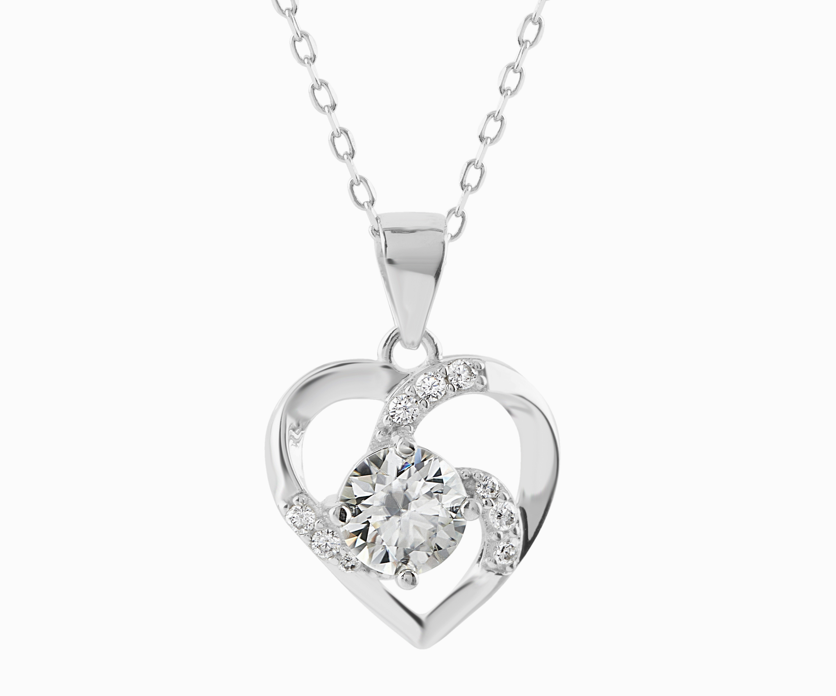 Abstract Heart Moissanite Stone Pendant with Sterling Silver Chain
