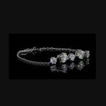 An array of round white moissanite stones adorns our Cosmic Bracelet, harmoniously blending various sizes for a captivating allure. This exquisite piece effortlessly infuses your style with sizzle and sparkle, enhancing your morning and evening looks alike.