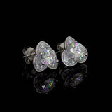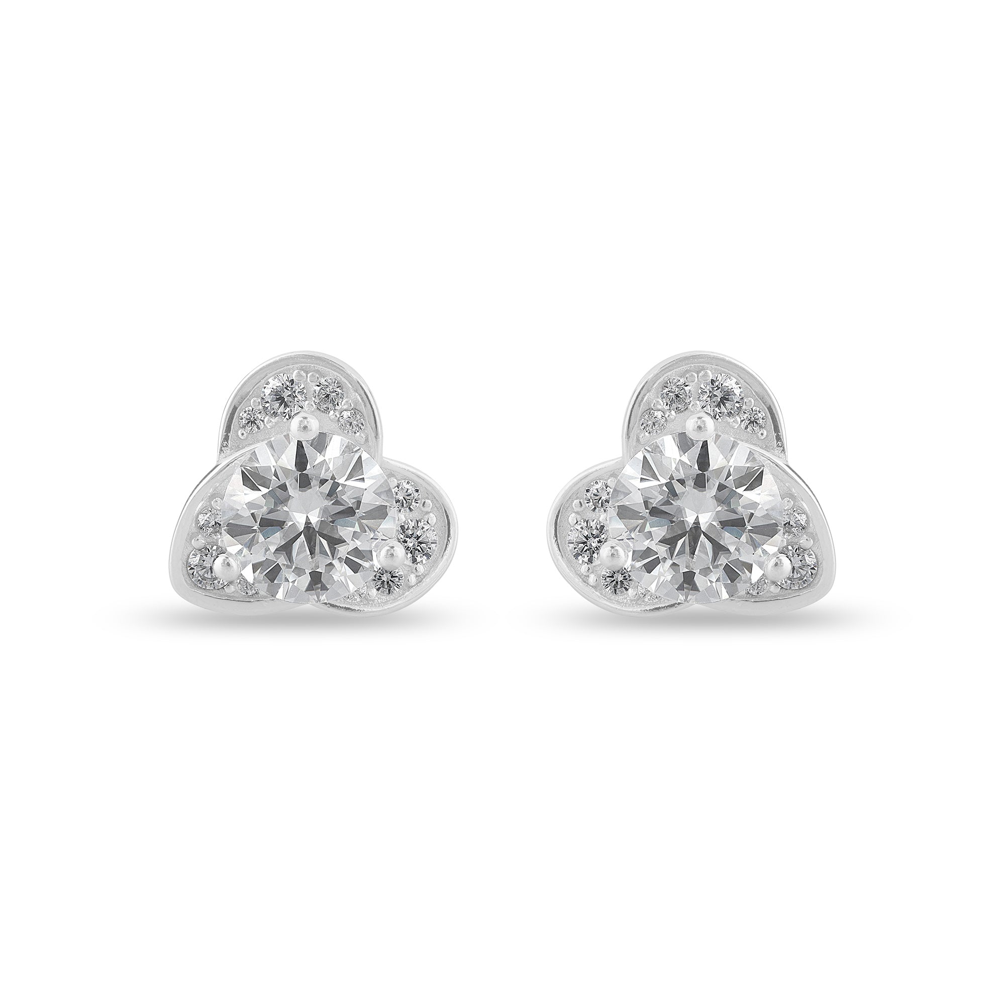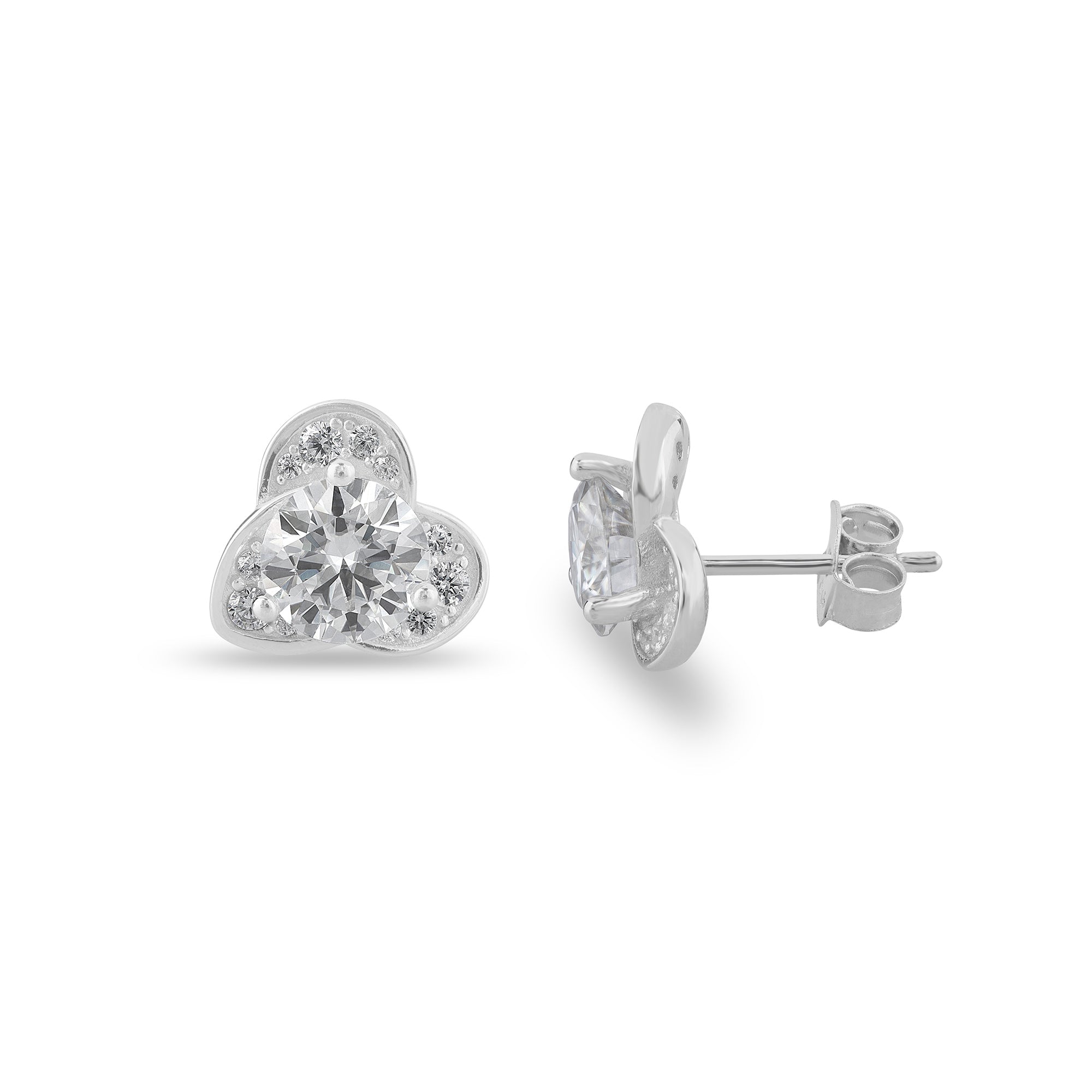 Beautifully crafted, the Flower Petal Moissanite Stud Earring showcases a central round white moissanite gemstone, gracefully encircled by a petal-inspired design adorned with smaller stones. This pair, meticulously fashioned from sterling silver, is a versatile choice that seamlessly complements any occasion, from your everyday professional attire to elegant evening cocktails.