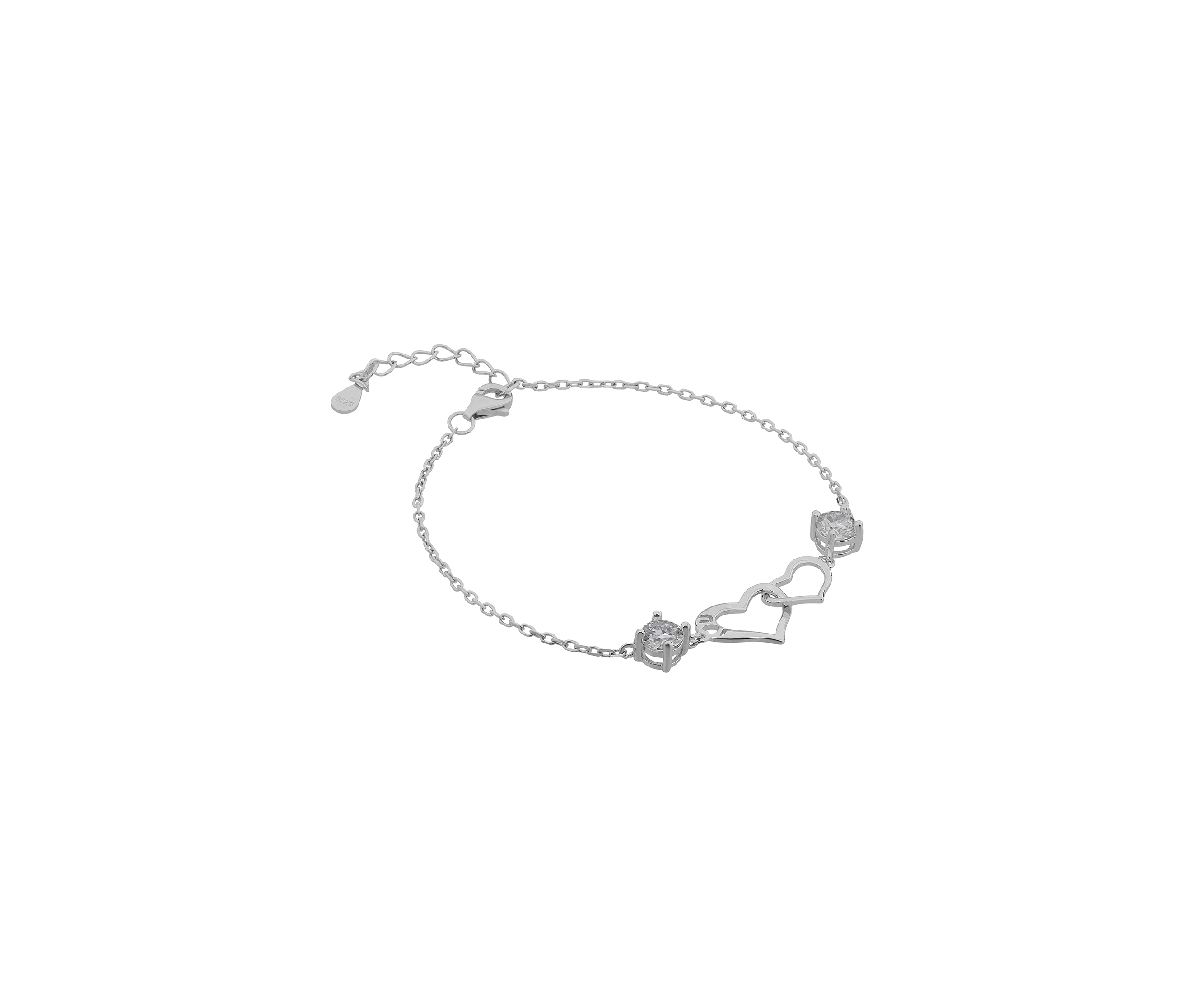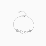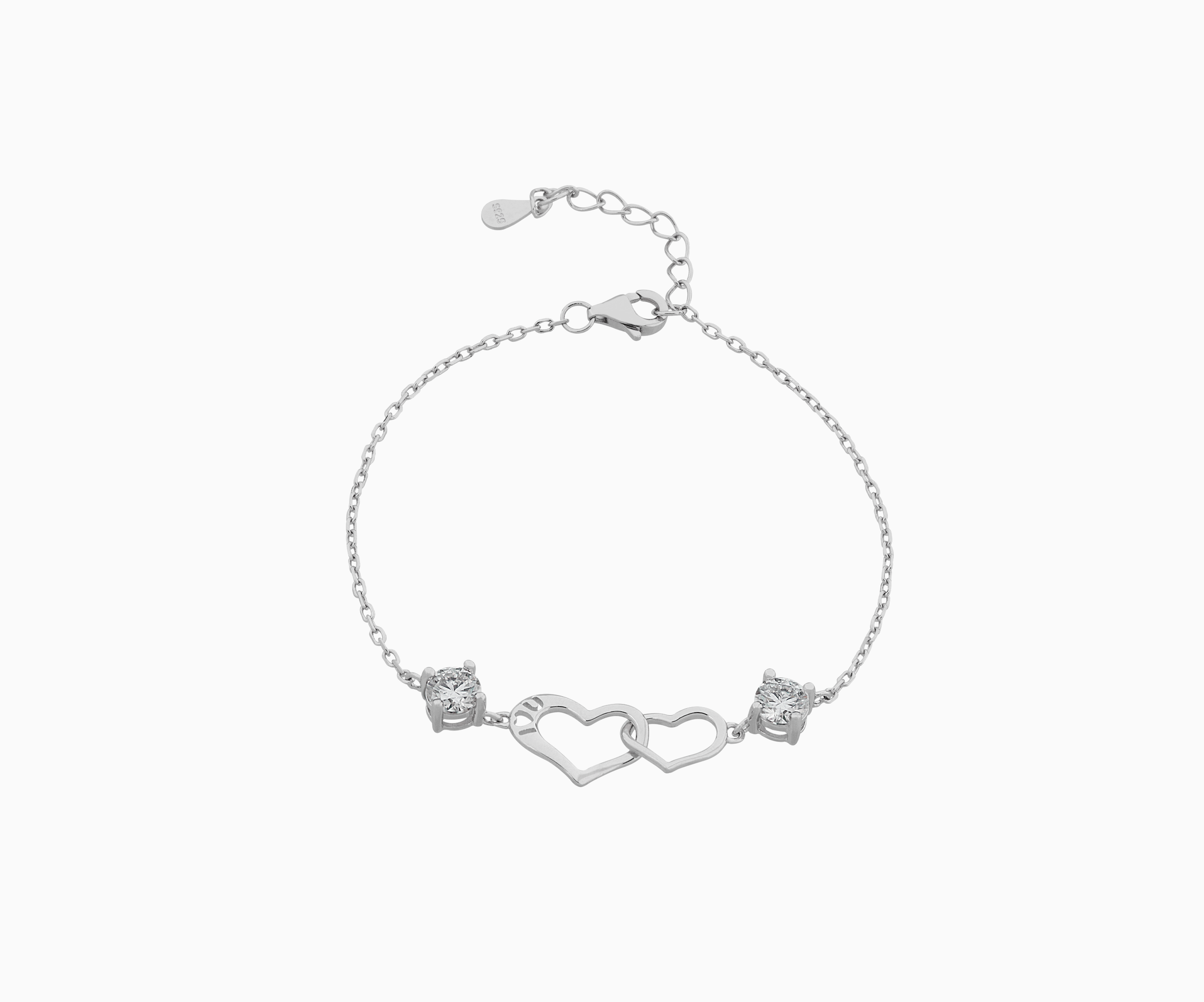 Experience a fusion of elegance and romance with our timeless double-heart sterling silver bracelet. Adorned with two brilliant moissanite gemstones, it imparts a delicate sparkle to this symbol of love. Treat yourself to this exquisite piece, celebrating self-love's beautiful expression!