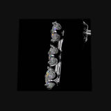 The regal drop earrings are crafted from the rows of round cut moissanite stones on sterling silver setting. They make a modern statement while retaining timeless charm, a quintessential choice for both daytime and glamorous evening ensembles.