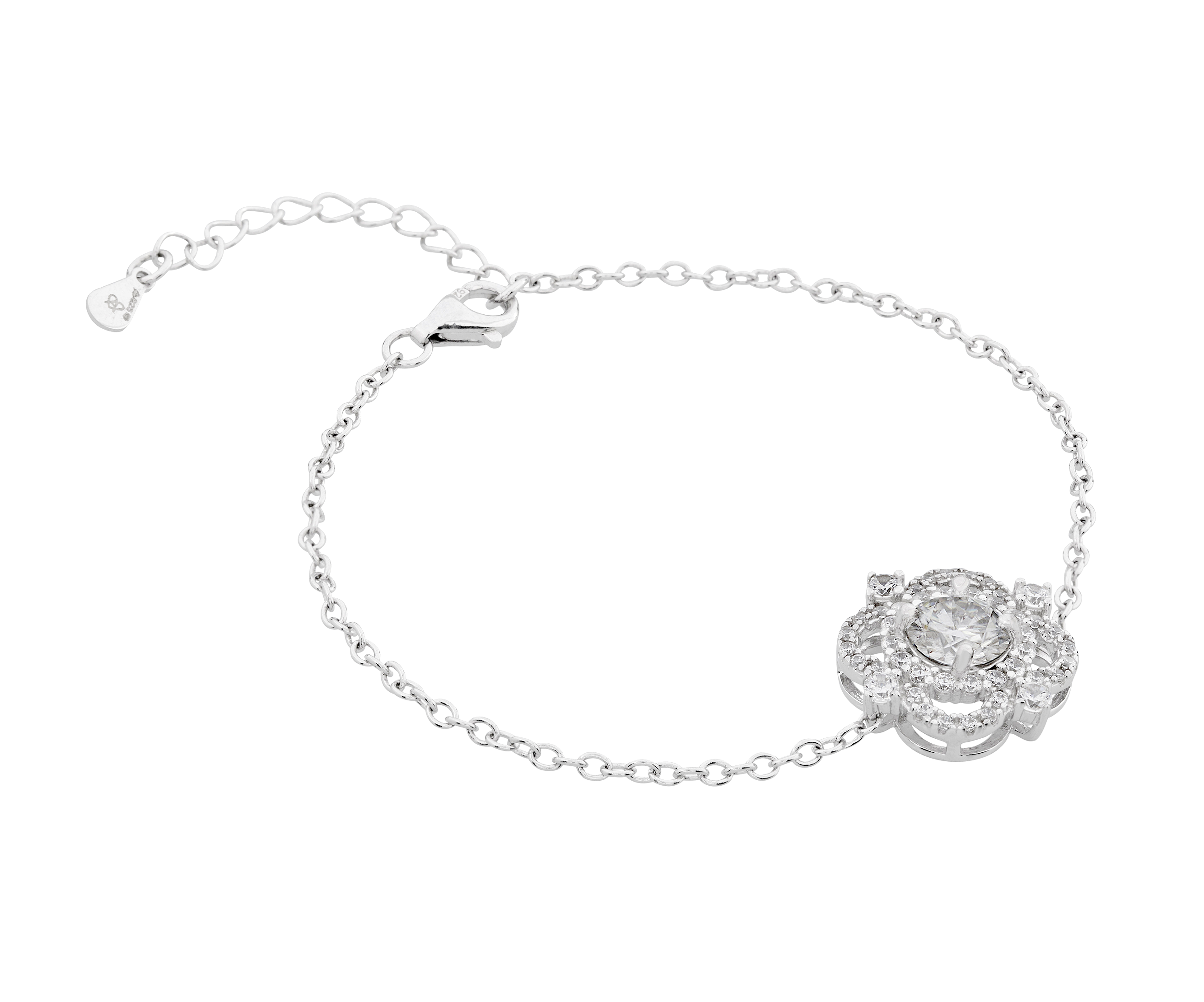 Emanating from our exquisite Stardust Collection, this statement bracelet boasts a central, scintillating round moissanite gemstone, encircled by smaller moissanite stones, creating a striking design. Versatility reigns, as it gracefully complements any ensemble, elevating your overall aesthetic.