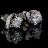 Exquisitely crafted, the Twisted Moissanite Stud Earring showcases a dazzling 1-carat white moissanite gemstone with a round cut. This magnificent gem is elegantly nestled within an intricately designed twisted structure, which is further adorned with small white stones. This sophisticated pair, meticulously fashioned from sterling silver, is certain to enhance the beauty of your every ensemble, adding a touch of elegance to your appearance.